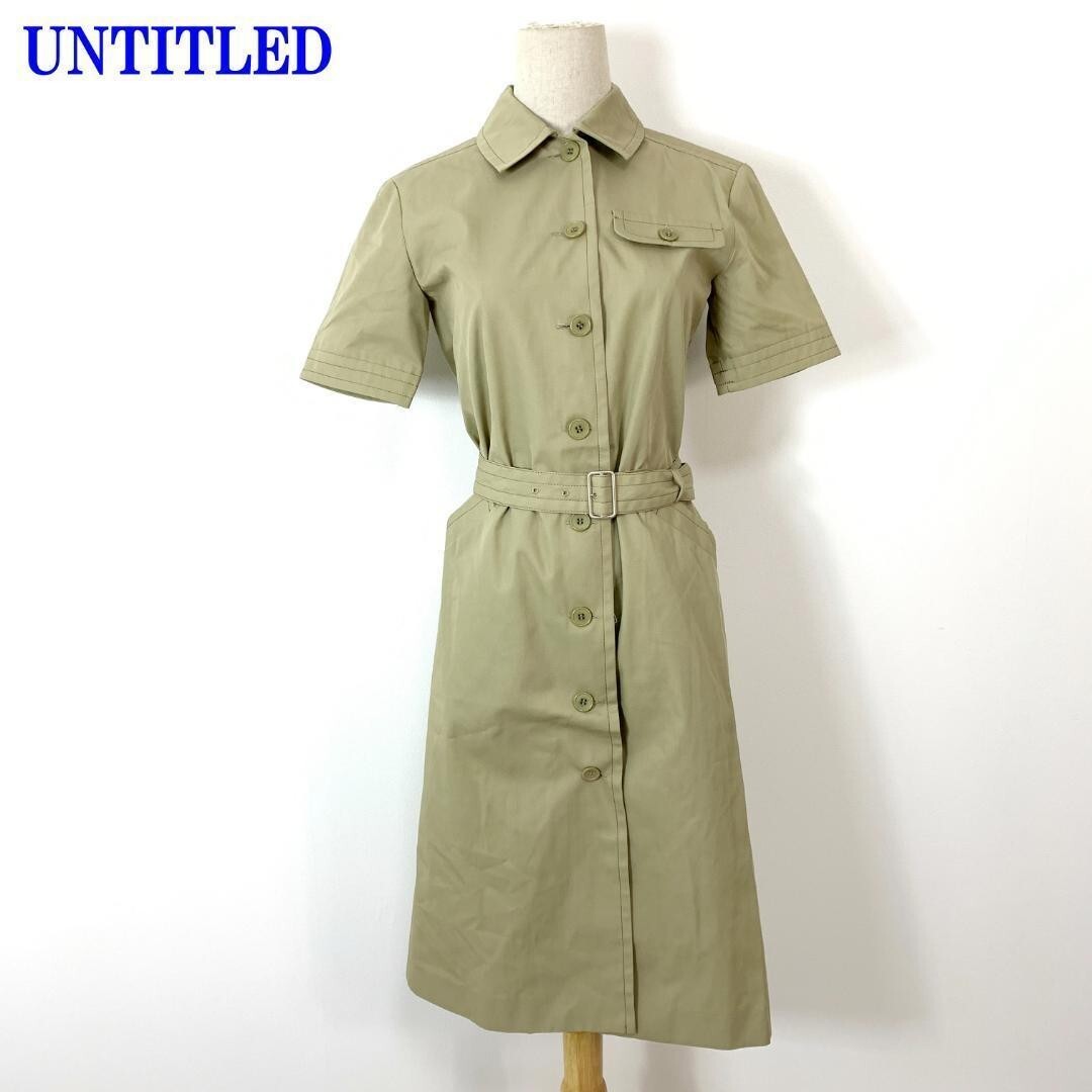 > アンタイトル シャツワンピース ベージュUNTITLED 半袖トレンチコート ベルト付き ロング ポリエステル コットン 9 C3089