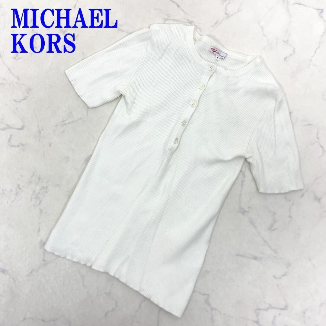 - マイケルコース Tシャツ 白 コットン MICHAEL KORS リブT ヘンリーネック綿100% リブ 4 C3366