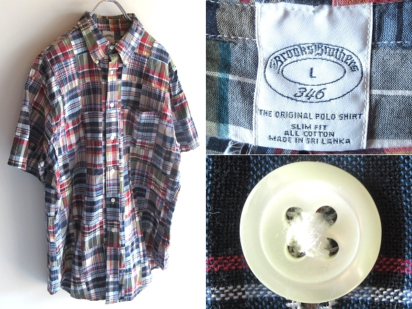 - ネコポス対応 Brooks Brothers 346 ブルックスブラザーズ SLIM FIT コットン マドラスチェック クレイジーパッチワークシャツ BDシャツ L