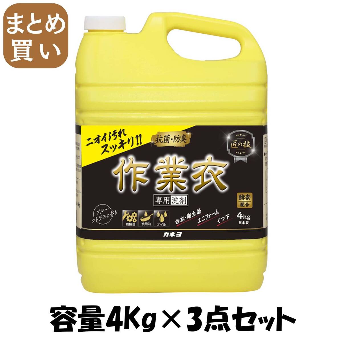- 【まとめ買い】匠の技 液体作業衣専用洗剤 4kg 容量4KG×3点セット カネヨ石鹸 衣料用洗剤