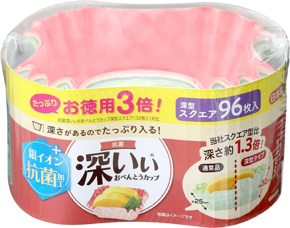 - お徳用3倍抗菌深いぃおべんとうカップ深型スクエア4色96枚入 容量96マイ 東洋アルミ お弁当用品