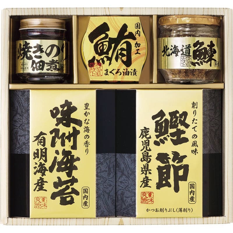 ▼▼▼▼▼▼注意事項▼▼▼▼▼▼・送料込み(送料800円が商品価格に含まれています) 一部地域では追加送料あり。・お取り寄せ商品です。弊社にて手配後、メーカー・卸業者からの直送になります。・まれにメーカー欠品、出荷遅延等が発生致します。問題発生時は別途メールにてご連絡致します。・配送方法の指定、日時指定、置き配、ギフト対応、他商品との同梱配送などは対応できません。・まとめ買いや複数購入の場合は通常より発送に時間が掛かる場合がございます・複数個口の場合、2階以上への搬入ができない場合があります。(その場合は1階での受け渡しとなります)・大型連休、お盆、年末年始などは発送をお休みさせていただく場合がございます・メーカー都合により、パッケージは予告なく変更される場合がございます・梱包用のダンボールはリサイクル品を使用させていただきます。・注文に関するご連絡(注文確定通知・発送通知など)はメールでご案内させていただきます※商品ページの内容について、少しでもご不明な点などがございましたら購入前に一度ご連絡ください▲▲▲▲▲▲注意事項▲▲▲▲▲▲〇商品説明小豆島で製造された焼き海苔入りの佃煮、鹿児島県産鰹節など選りすぐりの逸品を詰合せた和風ギフトです。〇商品仕様【パッケージサイズ】260×70×250mm【内容】北海道産鰊フレーク:50g・焼きのり佃煮:85g・鹿児島県産鰹節:(2g×3)・有明海産味附海苔:8切10枚入・まぐろ油漬け:70g×各1【アレルゲン】小麦・えび【生産国】日本【パッケージ形態】化粧箱入【保存方法】常温【賞味期限】製造日より約540日(出典:エルスト)