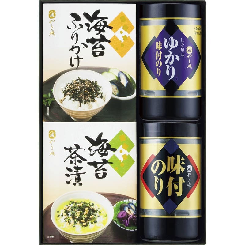 ▼▼▼▼▼▼注意事項▼▼▼▼▼▼・送料込み(送料800円が商品価格に含まれています) 一部地域では追加送料あり。・お取り寄せ商品です。弊社にて手配後、メーカー・卸業者からの直送になります。・まれにメーカー欠品、出荷遅延等が発生致します。問題発生時は別途メールにてご連絡致します。・配送方法の指定、日時指定、置き配、ギフト対応、他商品との同梱配送などは対応できません。・まとめ買いや複数購入の場合は通常より発送に時間が掛かる場合がございます・複数個口の場合、2階以上への搬入ができない場合があります。(その場合は1階での受け渡しとなります)・大型連休、お盆、年末年始などは発送をお休みさせていただく場合がございます・メーカー都合により、パッケージは予告なく変更される場合がございます・梱包用のダンボールはリサイクル品を使用させていただきます。・注文に関するご連絡(注文確定通知・発送通知など)はメールでご案内させていただきます※商品ページの内容について、少しでもご不明な点などがございましたら購入前に一度ご連絡ください▲▲▲▲▲▲注意事項▲▲▲▲▲▲〇商品説明口どけのよい海苔に有機丸大豆醤油使用の調味たれで味付けした旨味のある味付海苔、三島食品の「ゆかり」を使用した調味たれで味付けした美味しくさわやかな赤しそ風味の味付海苔を中心に、ふりかけ、茶漬けをセットしたバラエティギフトです。〇商品仕様【パッケージサイズ】185×73×275mm【内容】味付のり:8切24枚・しそ風味のり:8切24枚・のり茶漬け:(5.5g×3袋)・のりふりかけ:(5g×3袋)×各1【アレルゲン】卵・小麦・乳・えび【生産国】日本【パッケージ形態】化粧箱入【保存方法】常温【賞味期限】製造日より約450日(出典:やま磯)