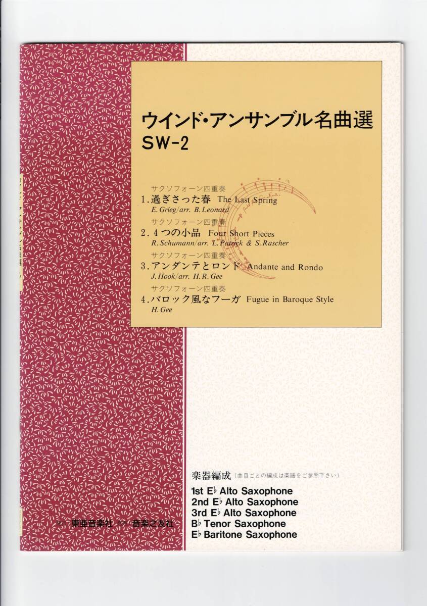 - 送料無料 サクソフォーン3-4重奏楽譜 ウインド・アンサンブル名曲選 SW-2 過ぎさった春 4つの小品 アンダンテとロンド 他全4曲 サックス