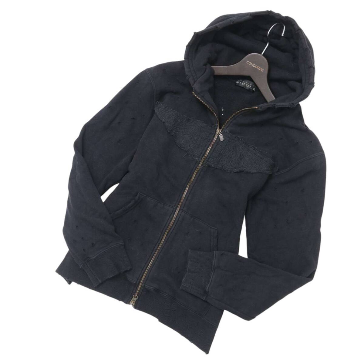 > MONSIEUR NICOLE ムッシュ ニコル 通年 ワッペン★ ダメージ加工 スウェット フルジップ パーカー Sz.48 メンズ 黒