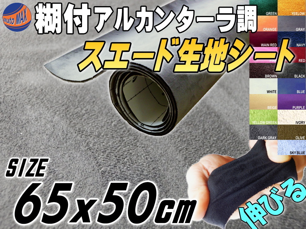 > スエード(小)灰 幅65cm×50cm伸びるアルカンターラ調スウェード生地シート裏面糊付きカッティング可 シート内装ステッカー車グレー 4