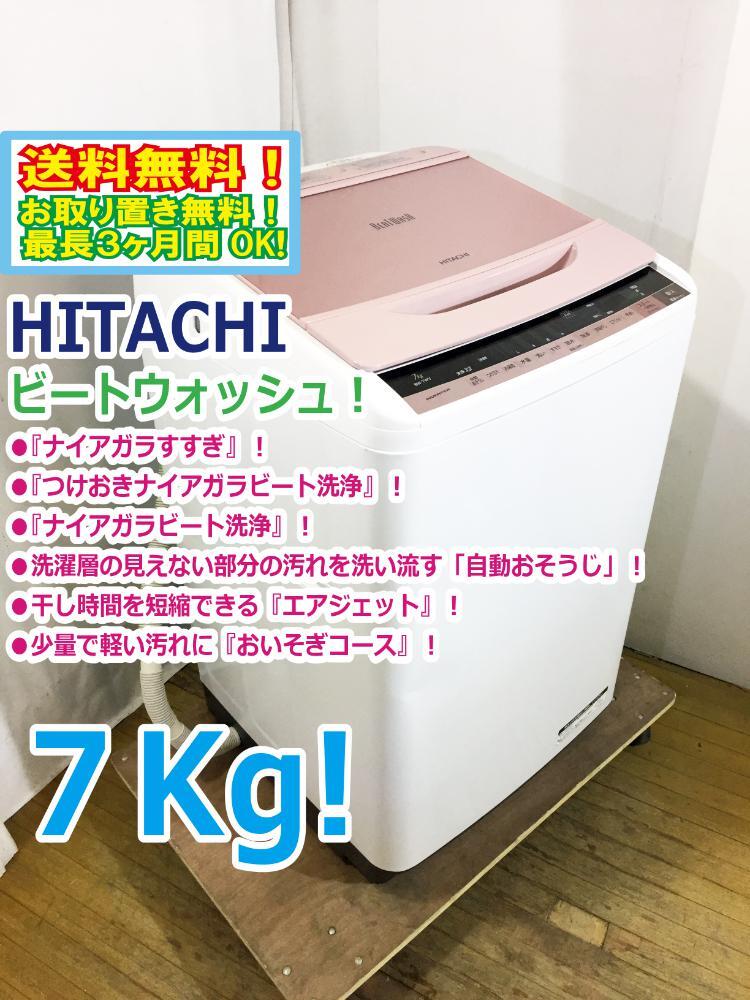> ◆送料無料★ 中古★日立 7㎏「ビートウォッシュ」つけおきナイアガラ ビート洗浄!! 洗濯機【◆BW-7WV-P】◆BD7