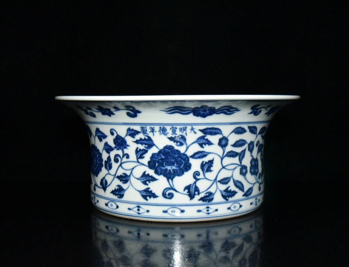 - 蔵友旧蔵出 明 宣德年製款 青花 龍紋 折沿盆 稀少珍品 貴重品 古陶瓷品 置物 古賞物 中国古玩 中国古美術品