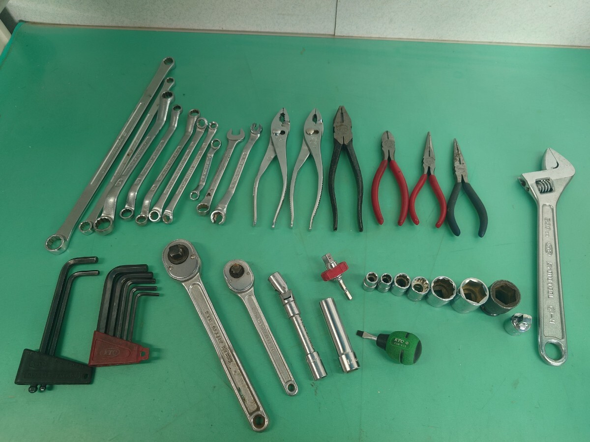 > ● KTC 工具 モンキー/めがね/コンビネーション/六角 レンチ プライヤー ラチェット ソケット 計38点 ハンドツール 大量 まとめ 中古 ③