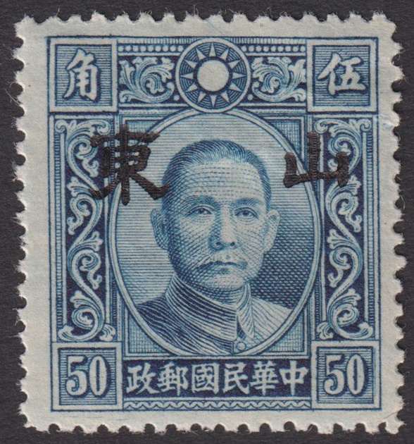 - 中国占領地切手 JPS:3C63a 山東 外框双線 省名加刷 大字 大東版孫文票 すかしなし 50分 未使用 2117