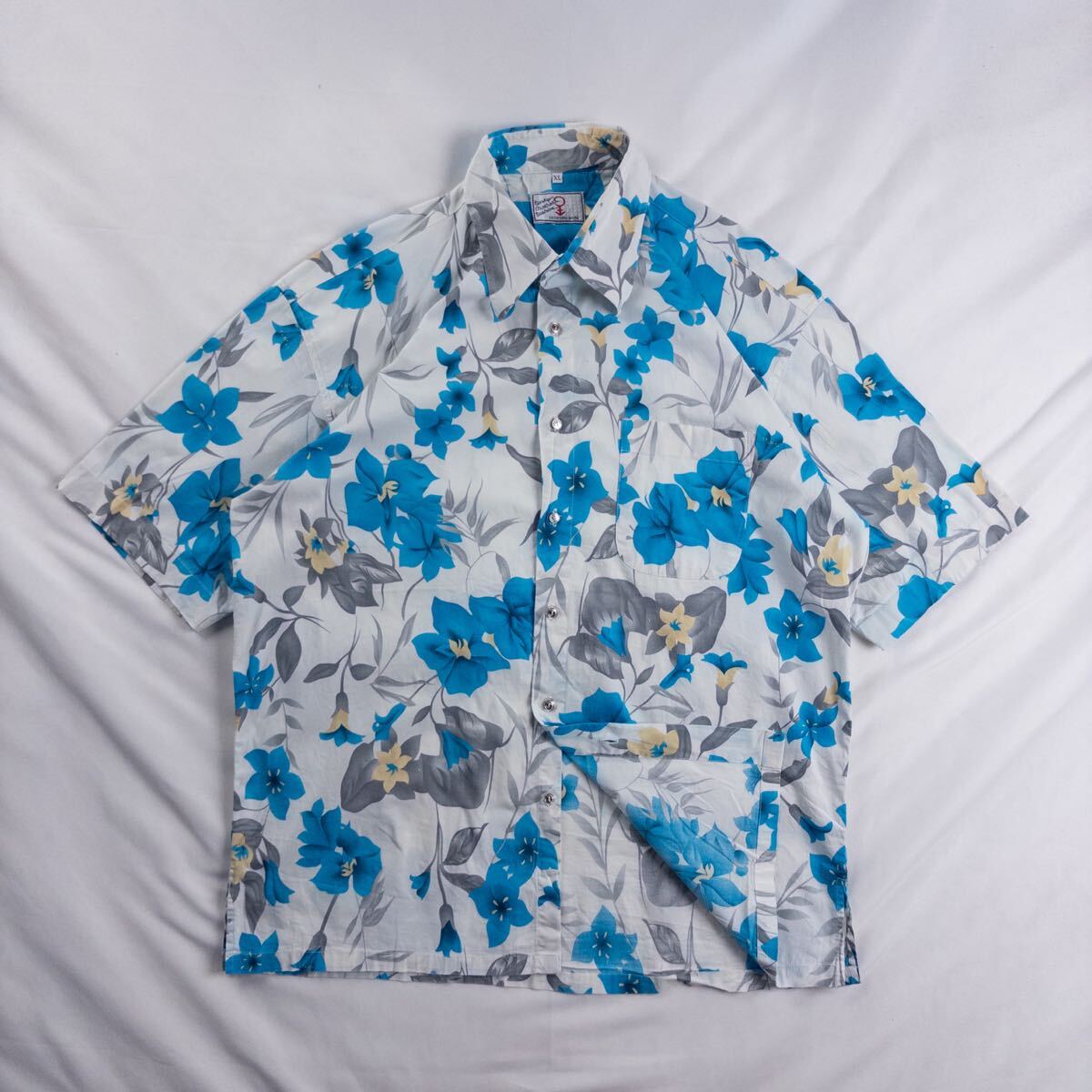 > Vintage エジプト製 90-00s Funky Brothers Fashion コットン100% 好配色 花柄 リーフ ボタニカル デザインボタン 総柄 デザインシャツ