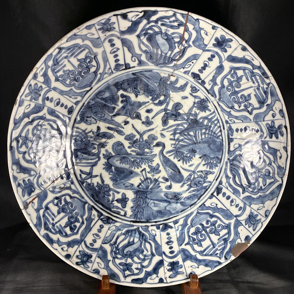 - 中国美術 青華 鳳凰子 古染付 金継ぎ 中国古玩 芙蓉手 時代物 古美術 骨董