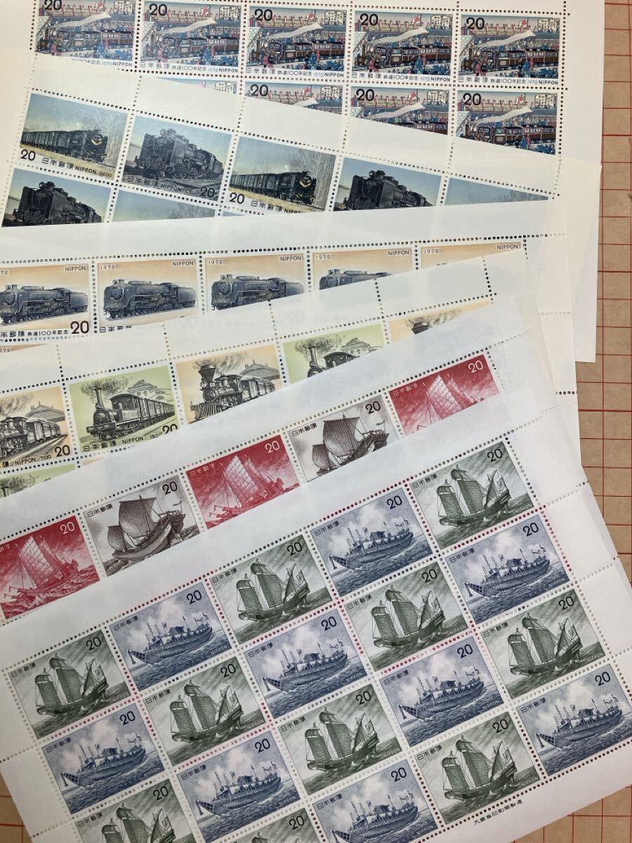 - D【古切手 船・鉄道もの】20円切手×20枚×6シート 額面2,400円 【ゆうパケットポスト対応】