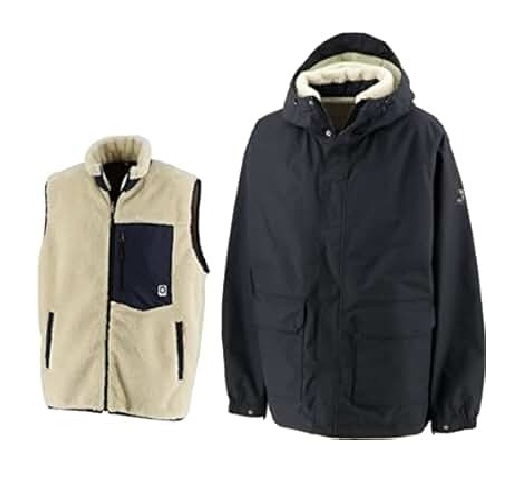 > ●CONVERSE/コンバース/3in1 ボアフリースベストライナー マウンテンパーカー/3WAY/シェルジャケット/ナイロンジャケット/サイズO/ブラック