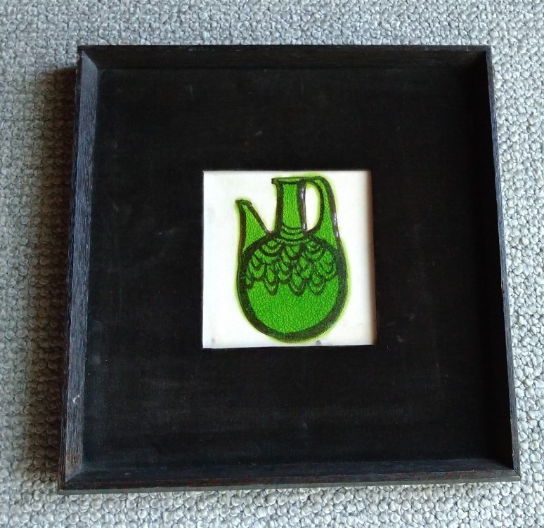 - 【貴重 入手困難】鈴木青々『壺文』壺を描いた陶板 額入り 裏面にサイン、落款有り 民芸 タイル絵 貫入 釉薬 陶磁器
