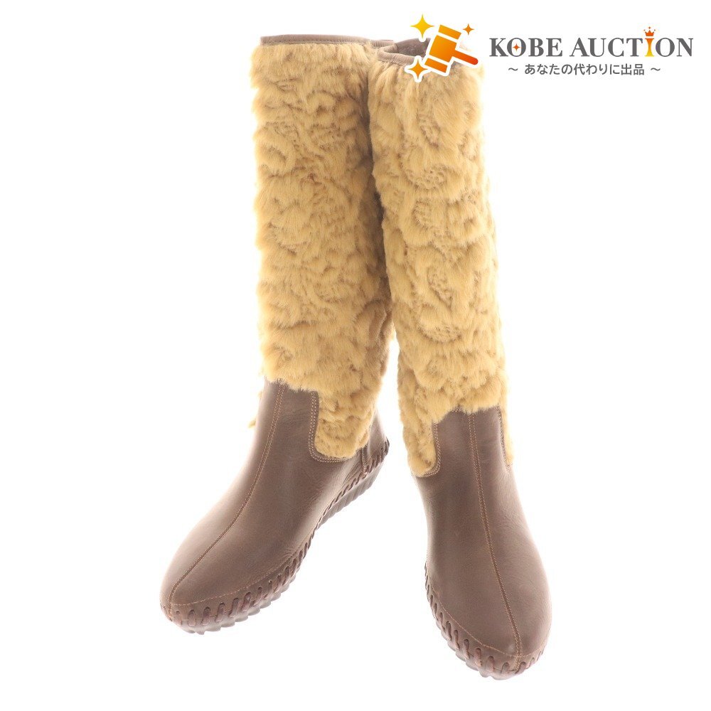> ■ アレックス ロングブーツ シューズ 靴 ファー イタリア製 レディース 38 (24.0cm)ブラウン 箱付き 未使用