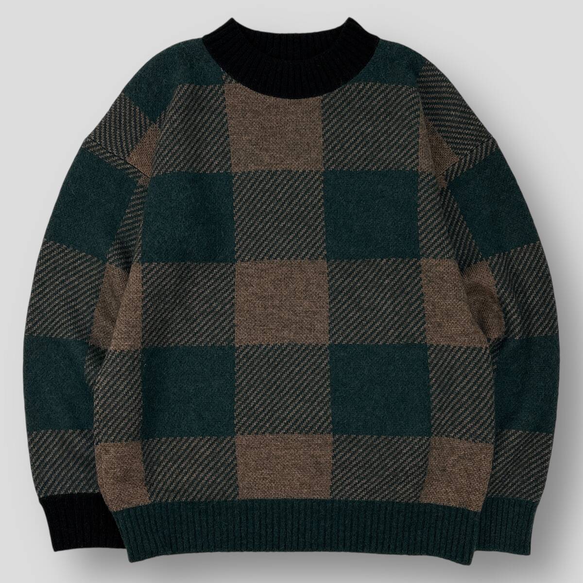 - 極美品 sacai サカイ 19AW Buffalo Check Knit Pullover バッファローチェック ニットプルオーバー 19-02081M 2 グリーン メンズ SSM5097