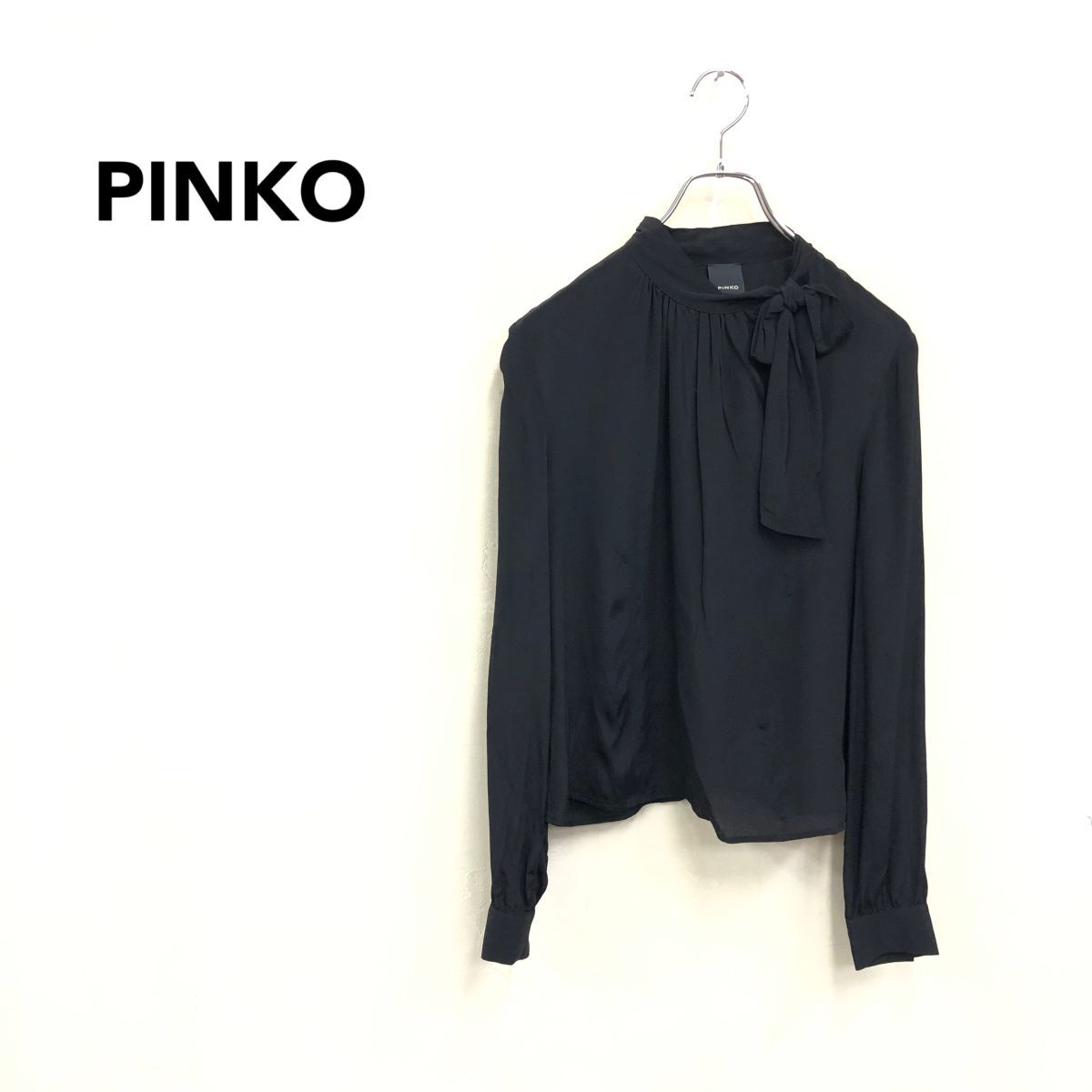 - 2S3400-J◆イタリア製 PINKO ピンコ リボンタイ付ブラウス◆ブラック サイズS レディース シルク 絹100% シアー 透け感 トップス 上品