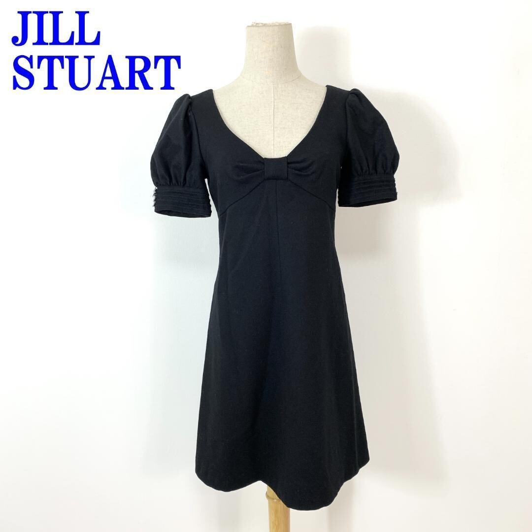 - ジルスチュアート ワンピース 黒 ブラック JILL STUART カシミヤ パフスリーブ 袖ストーンウール ナイロン 4 C3753