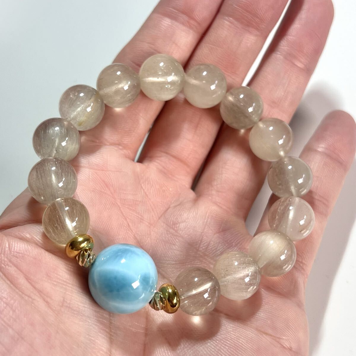- デザインブレスレット ラリマー&ベージュサゲニティッククォーツ 可愛い パワーストーン 天然石