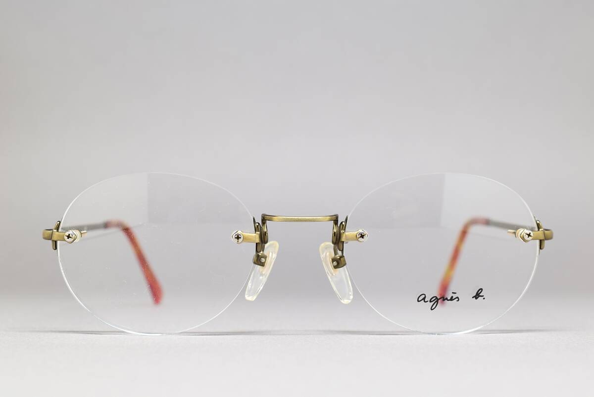 - デッドストック agnes b. AB-1022 AB 52-22 リムレス オーバル メガネ サングラス フレーム 日本製 Aブラス ヴィンテージ アニエスべー