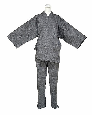 - 男性用作務衣 K1217-02L 送料無料 在庫処分 サイズLグレ-色 薄めの生地の作務衣 綿のウエストゴム式の男作務衣