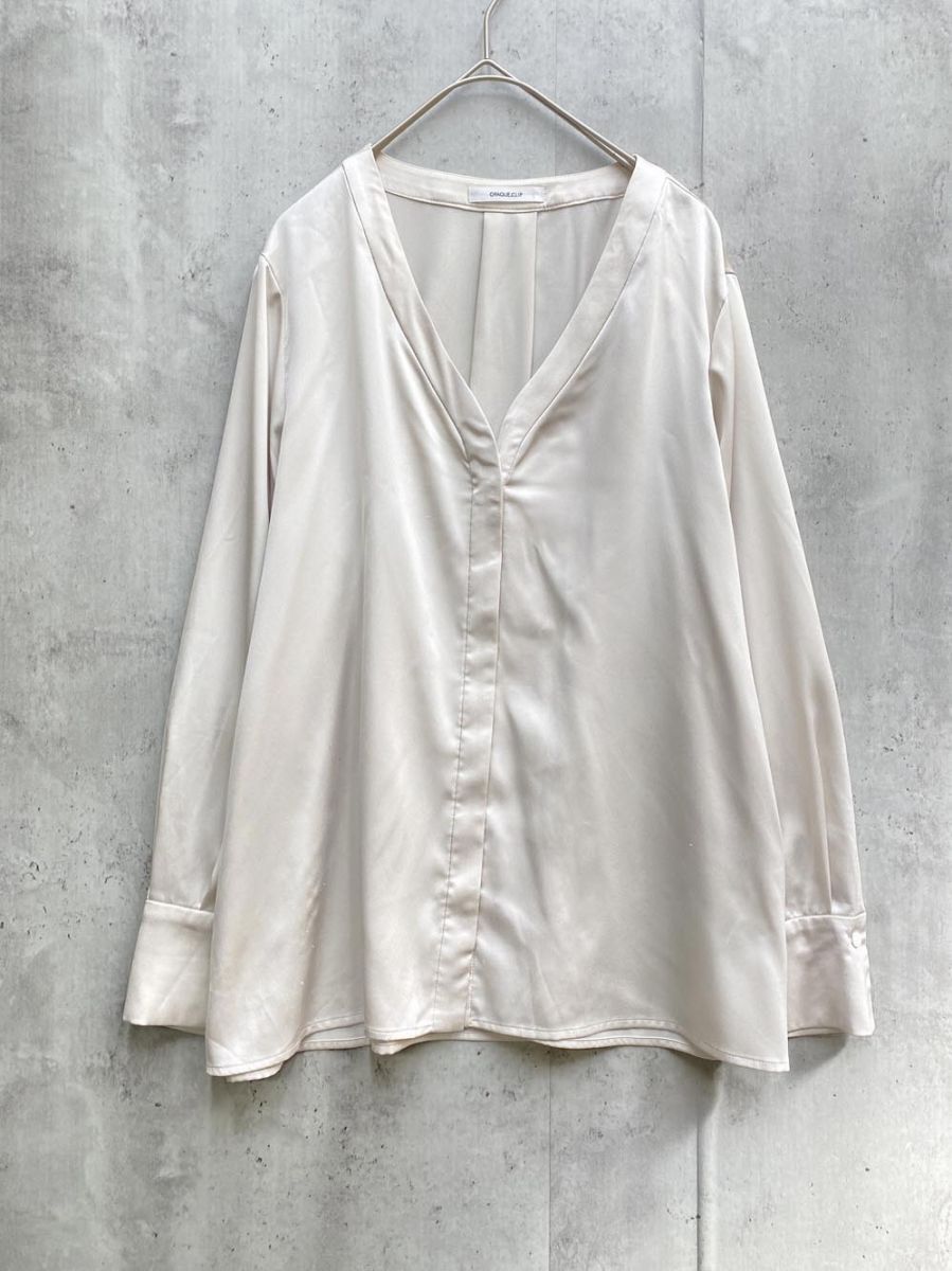 > ゆうパケットOK OPAQUE.CLIP オペークドットクリップ 無地 サテン Vネック ブラウス シャツ size38/M/オフホワイト ■◆
