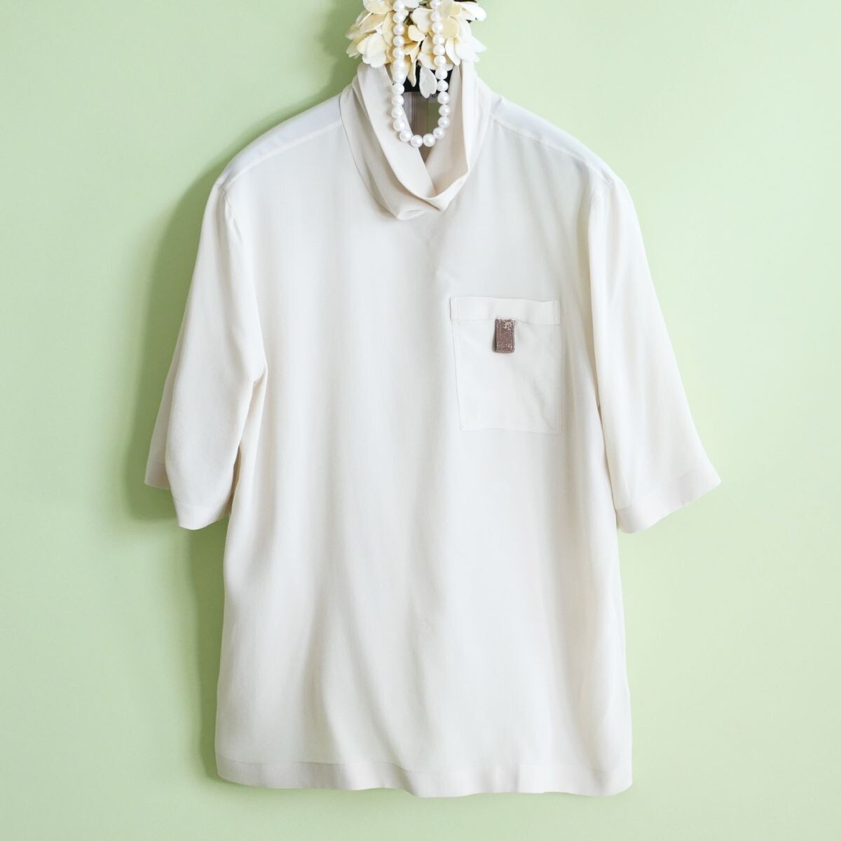 - dr516●プレフォール《BRUNELLO CUCINELLIブルネロクチネリ》モニーレディテール/シルク100%/ハーフスリーブブラウス/M