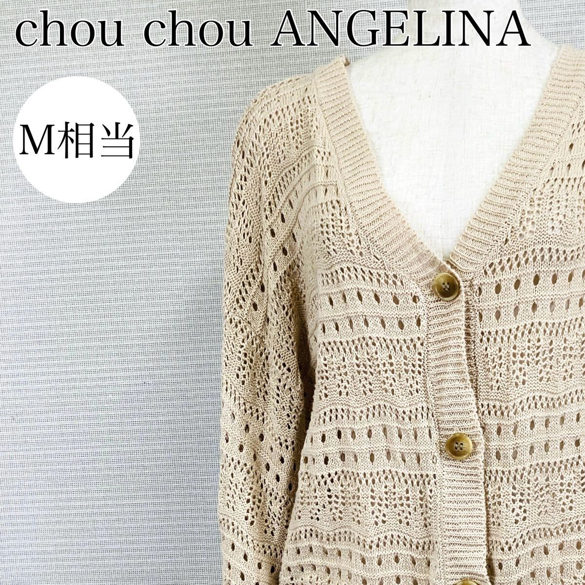 - 【A4097】 chou chou ANGELINA シュシュアンジェリーナ Mサイズ相当 トップス ニット カーディガン ベージュ 透かし編み 羽織りカジュアル