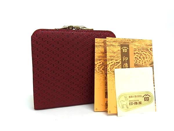 - ■美品■ 印傳屋 INDEN-YA インデンヤ 鹿革 がま口 二つ折り 財布 ウォレット 札入れ 小銭入れ レッド系×ブラック系 DH0635
