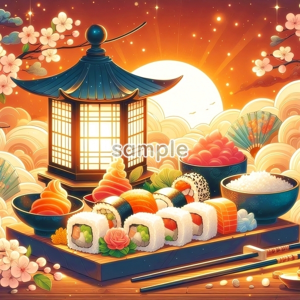 - A3 350dpi ラーメン 寿司アート オリジナル絵イラスト著作権フリー画像素材 86P Sushi art Original picture image material