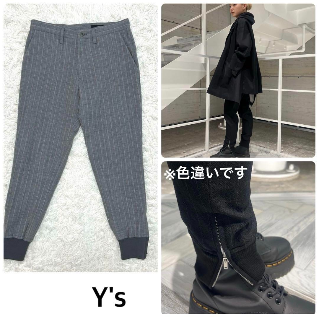 - 近年モデル 美品 Y's ワイズ ヨウジヤマモト 裾リブファスナーパンツ ウール ストライプ グレー レディース スラックス スポーティー