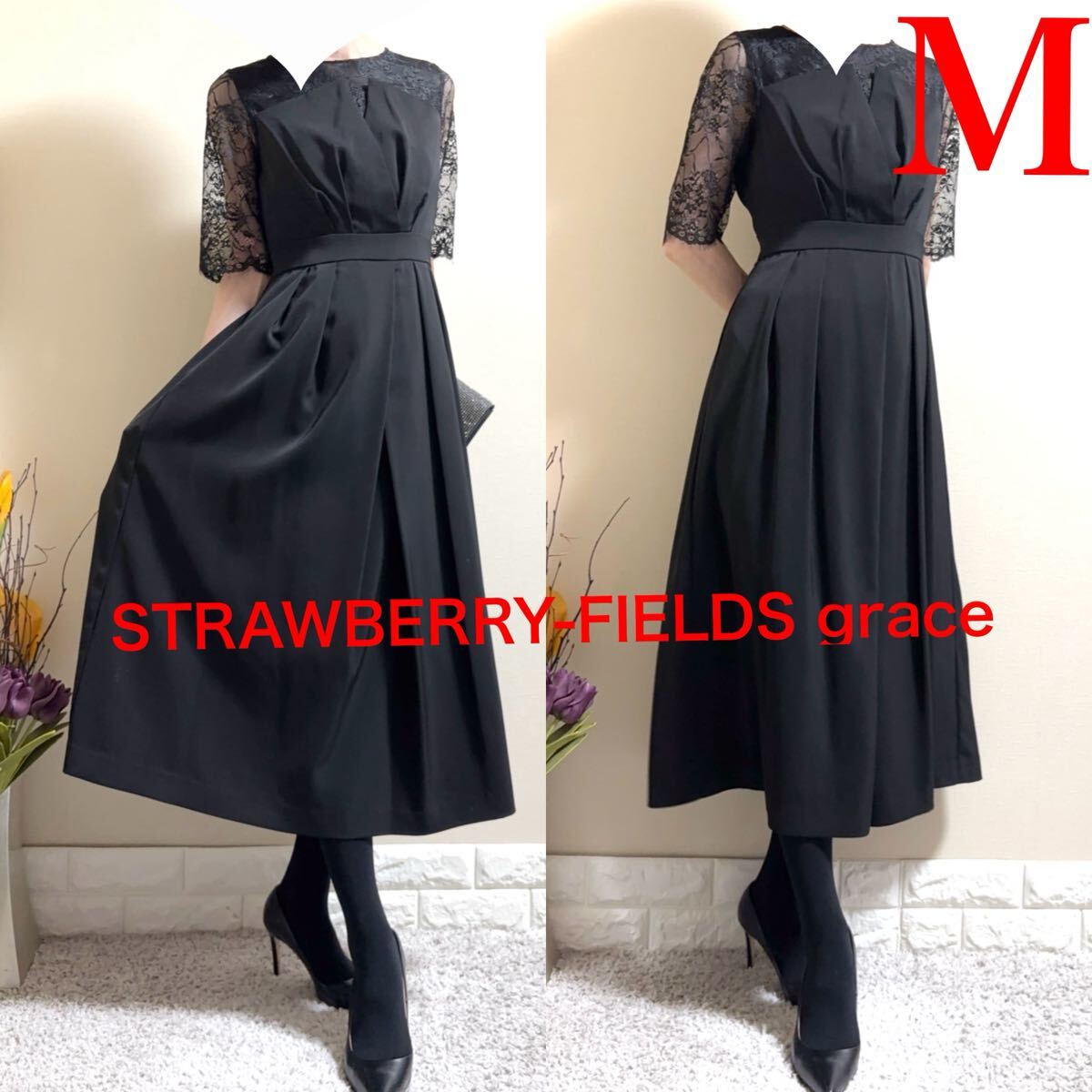 - 美品!ストロベリーフィールズ STRAWBERRY-FIELDS grace レース切替 脚長 ロングワンピース ドレス M 黒 オケージョン パーティ 通年