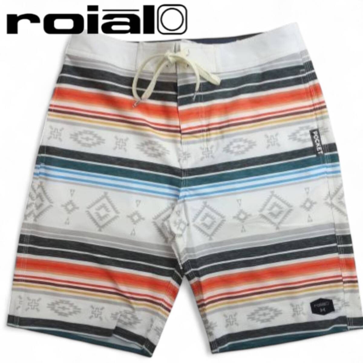 > roial ロイアル 新品 ネイティブ マルチボーダー 総柄 ストレッチ ボードショーツ サーフパンツ 水着 BS110 クリーム 30▲007▼20524k26