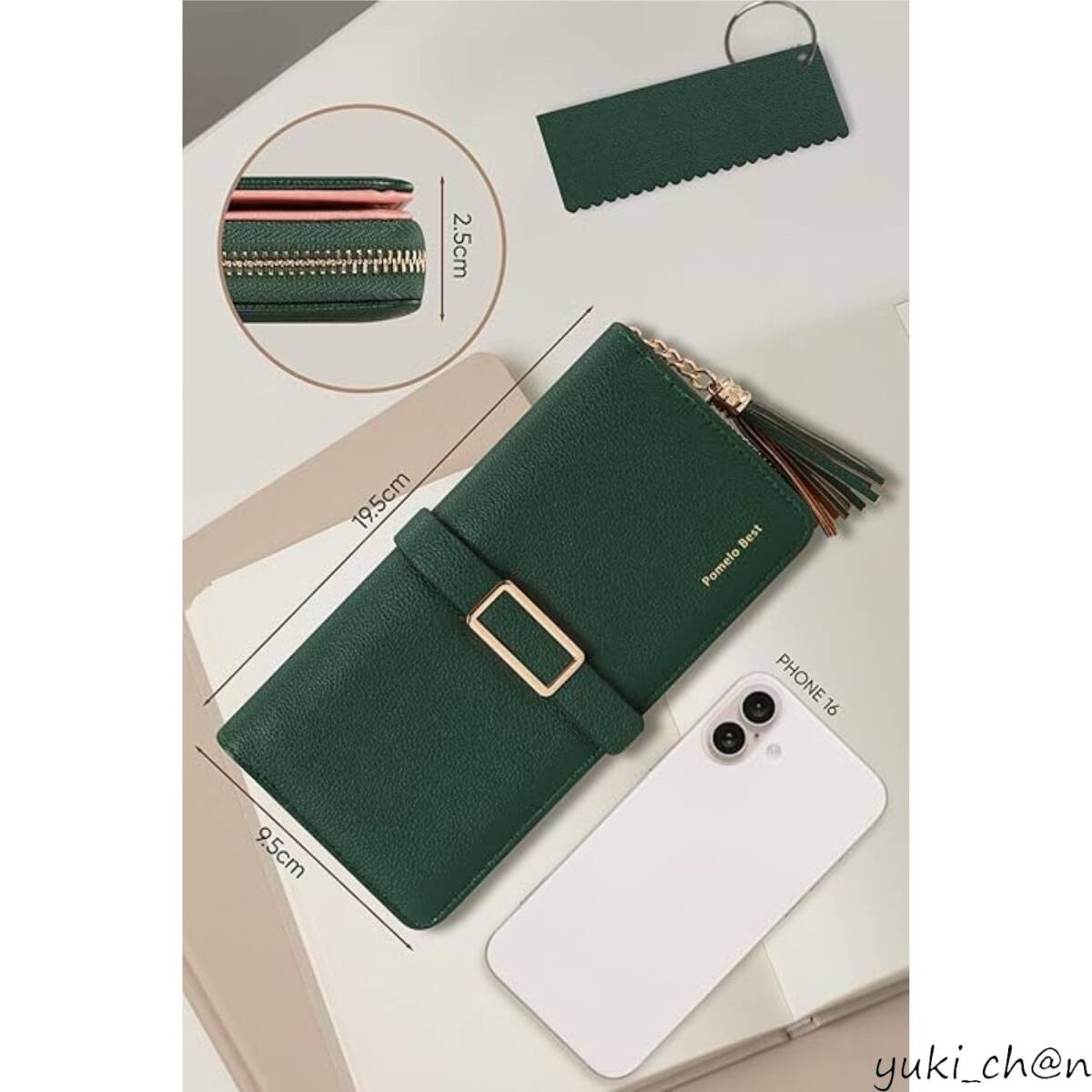 > 財布 レディース 長財布 大容量 小銭入れ 磁気防止 PUレザー 純色 緑 2.5 x 19.5 x 10 cm スマホ入れ可 プレゼント ギフト