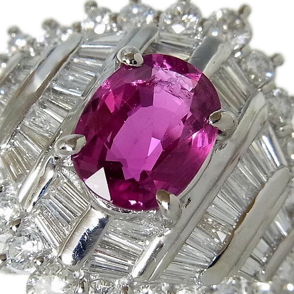 - Pt900 天然ルビー指輪 プラチナ ルビーリング R:1.18ct D:0.89ct 9.7g 11号