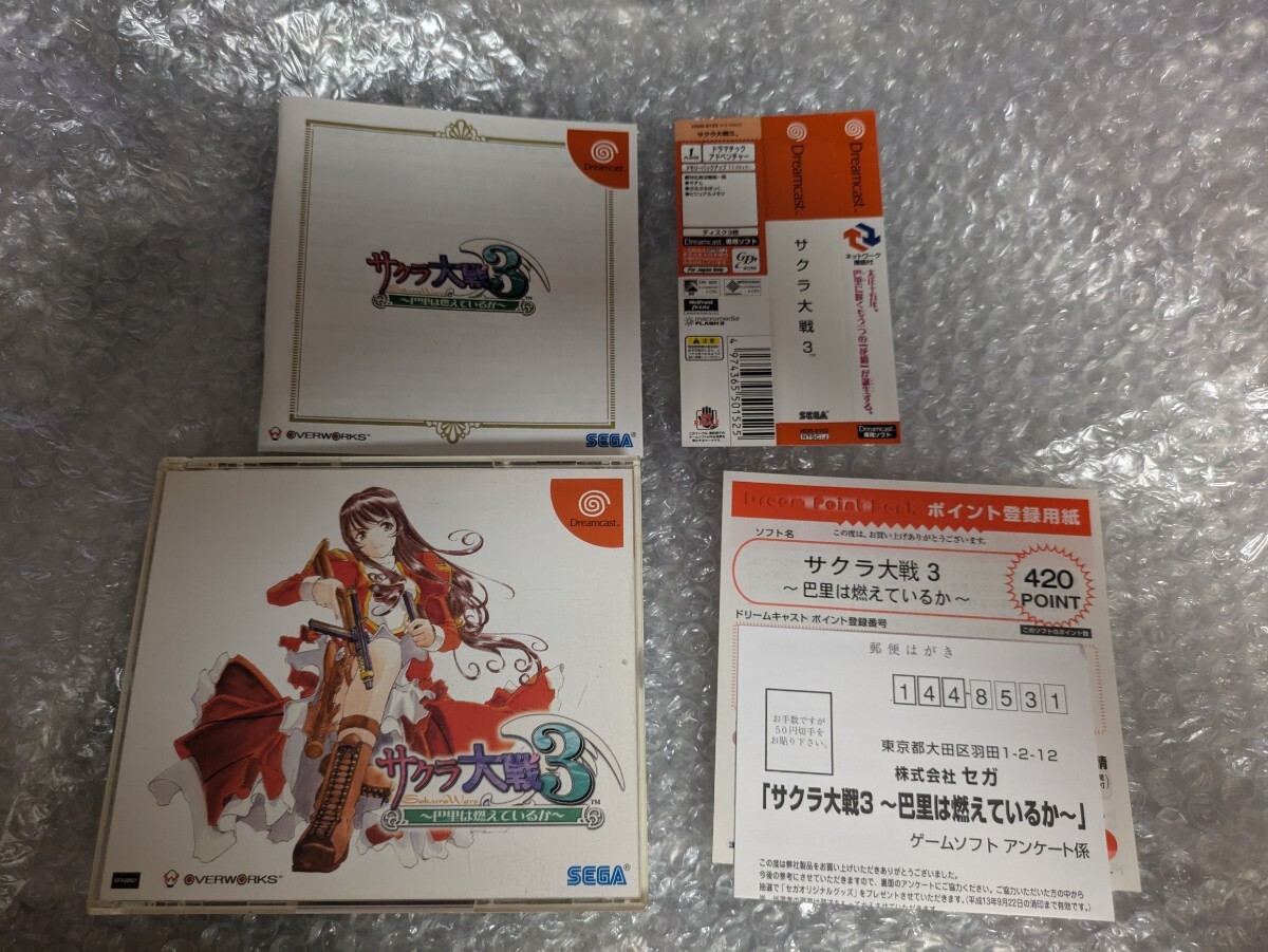 - 動作確認済み アンケート葉書 帯付き【ドリームキャスト】サクラ大戦3 巴里は燃えているか / DC DreamCast Dream Cast ドリキャス 即決設定