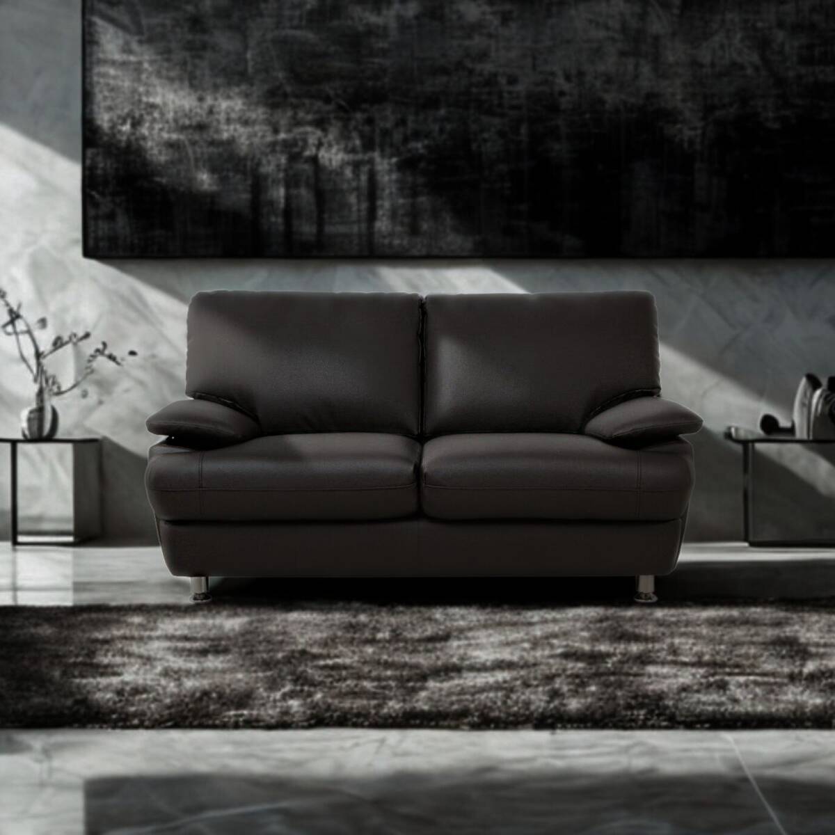 > 送料無料 ソファ カウチソファ 2人掛けソファ コンパクト ローバックソファ シンプル ダークブラウン 幅145cm 本革 半革 1mm厚 338-2p