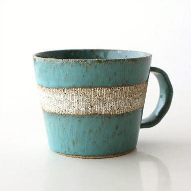 > マグカップ おしゃれ 陶器 日本製 瀬戸焼 焼き物 シンプル モダン ターコイズラインマグ 送料無料(一部地域除く) mkn3275