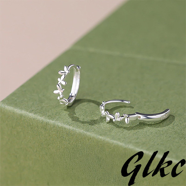 > 【小さめのデザインの蝶々モチーフピアス】 シルバーピアス S925 金属アレルギー対応 フープピアス プラチナメッキ プレゼント