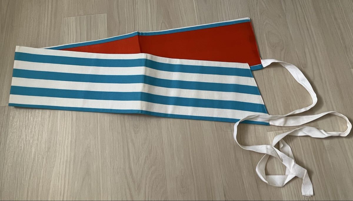 - 青×白 ボーダー 作り帯の帯のみ 難あり 浴衣 中古