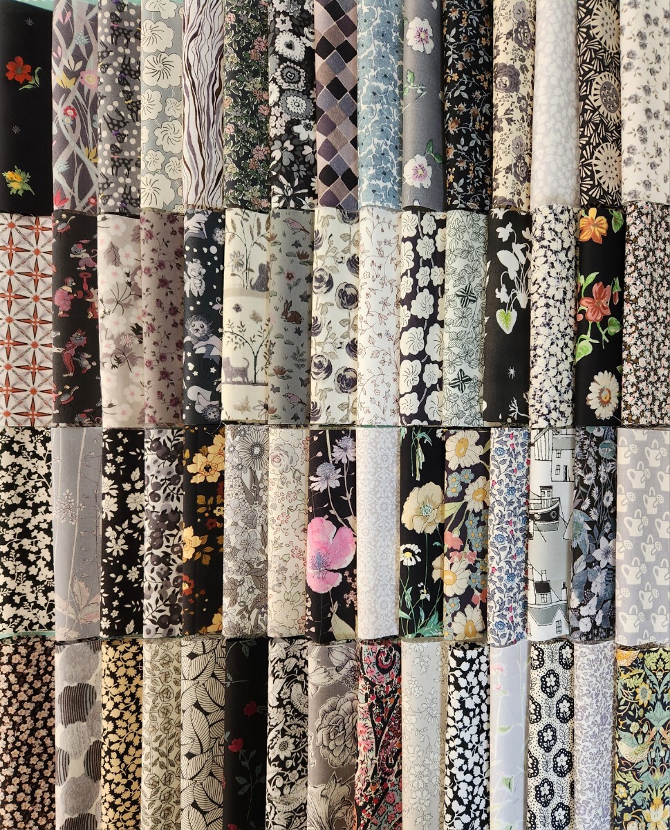 > BL225☆ブラック60☆ リバティ☆12×12cm☆60 枚セット☆廃盤生地多数 チェック&ストライプ ホビーラホビーレ ヴィンテージ入り