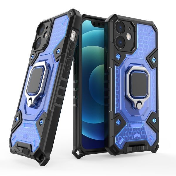 - A ブルー iPhone 12 mini 指リング付き ケース 衝撃吸収 カバー アイフォーン ミニ 本体 保護 超頑丈 保護 丈夫 米軍 耐衝撃 スタンド
