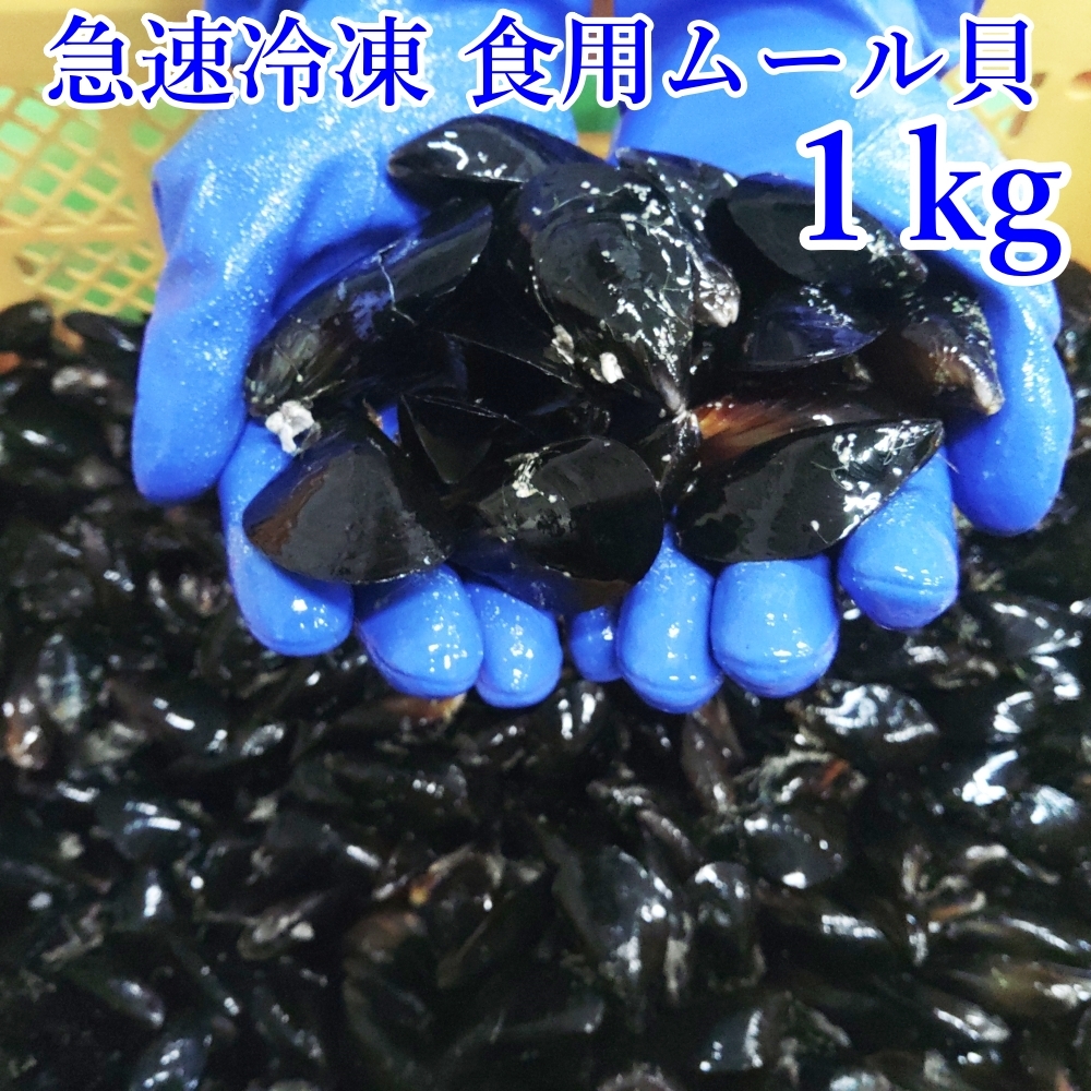 - 急速冷凍出荷 食用ムール貝1kg(約45個)スープベース★ムラサキイガイ大中小コミコミサイズ 出汁に、パスタに 加熱調理用1kg入り×1袋