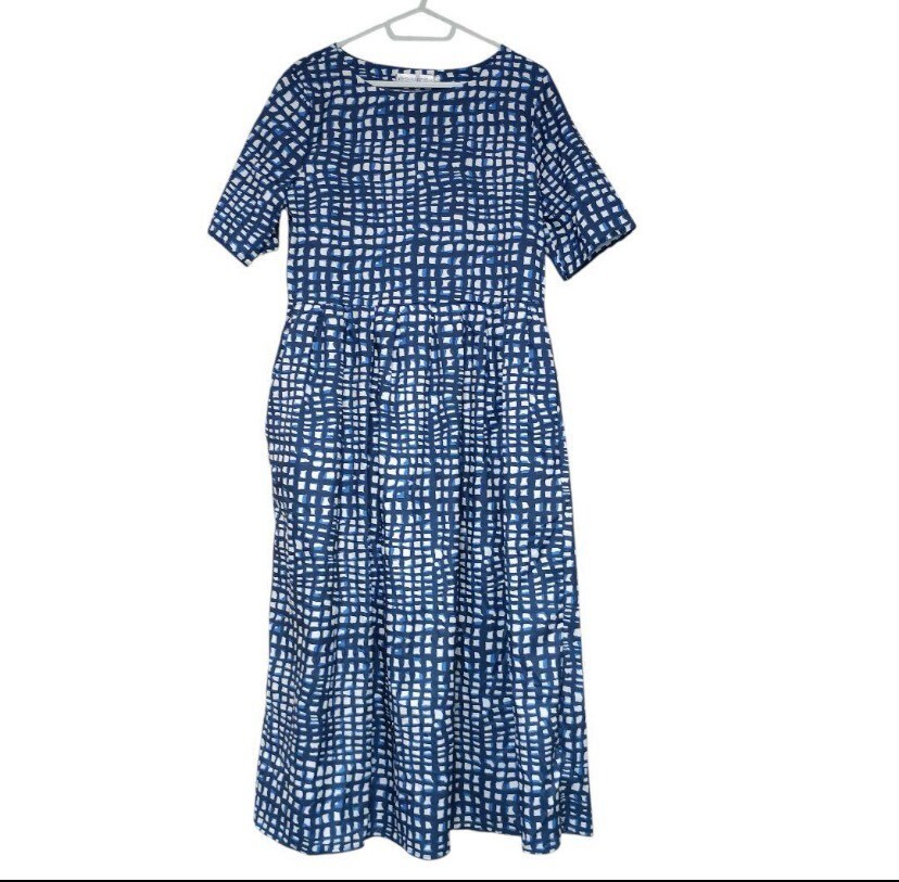- 美品☆AIYISHANGFUSHI☆レトロ総柄ハイウエスト切り替えロングワンピース 半袖 ブルー