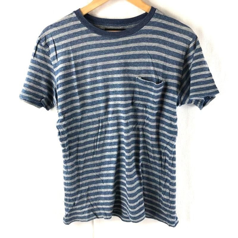 - ラウンジリザード LOUNGE LIZARD Tシャツ 半袖 ボーダー コットン100% 胸ポケット 日本製 青系 2025040200119
