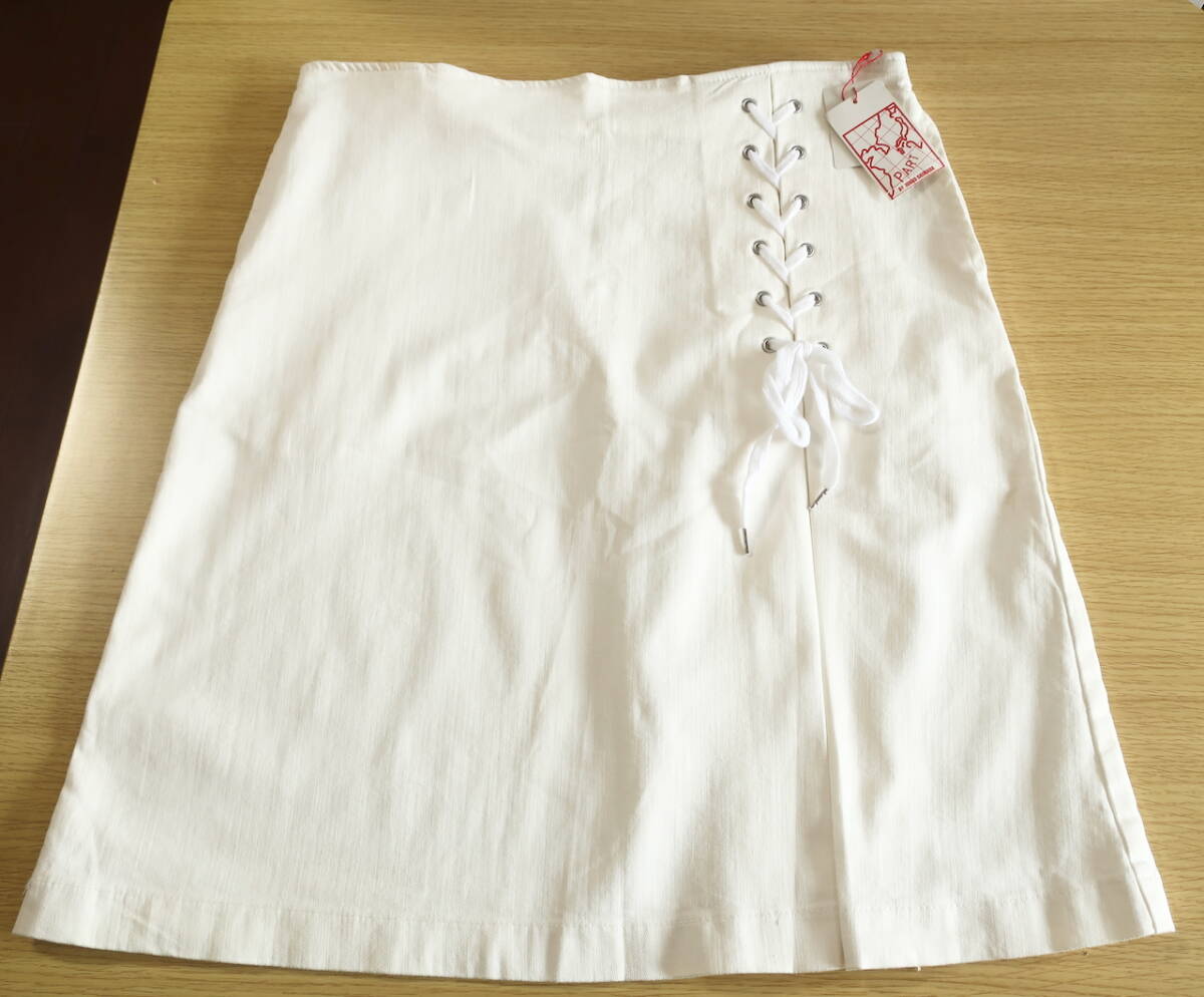 > PART2★大きいサイズ・膝上スカート【W73】白色コットン サイド編み込みデザイン・未使用 BY JUNKO SHIMADA
