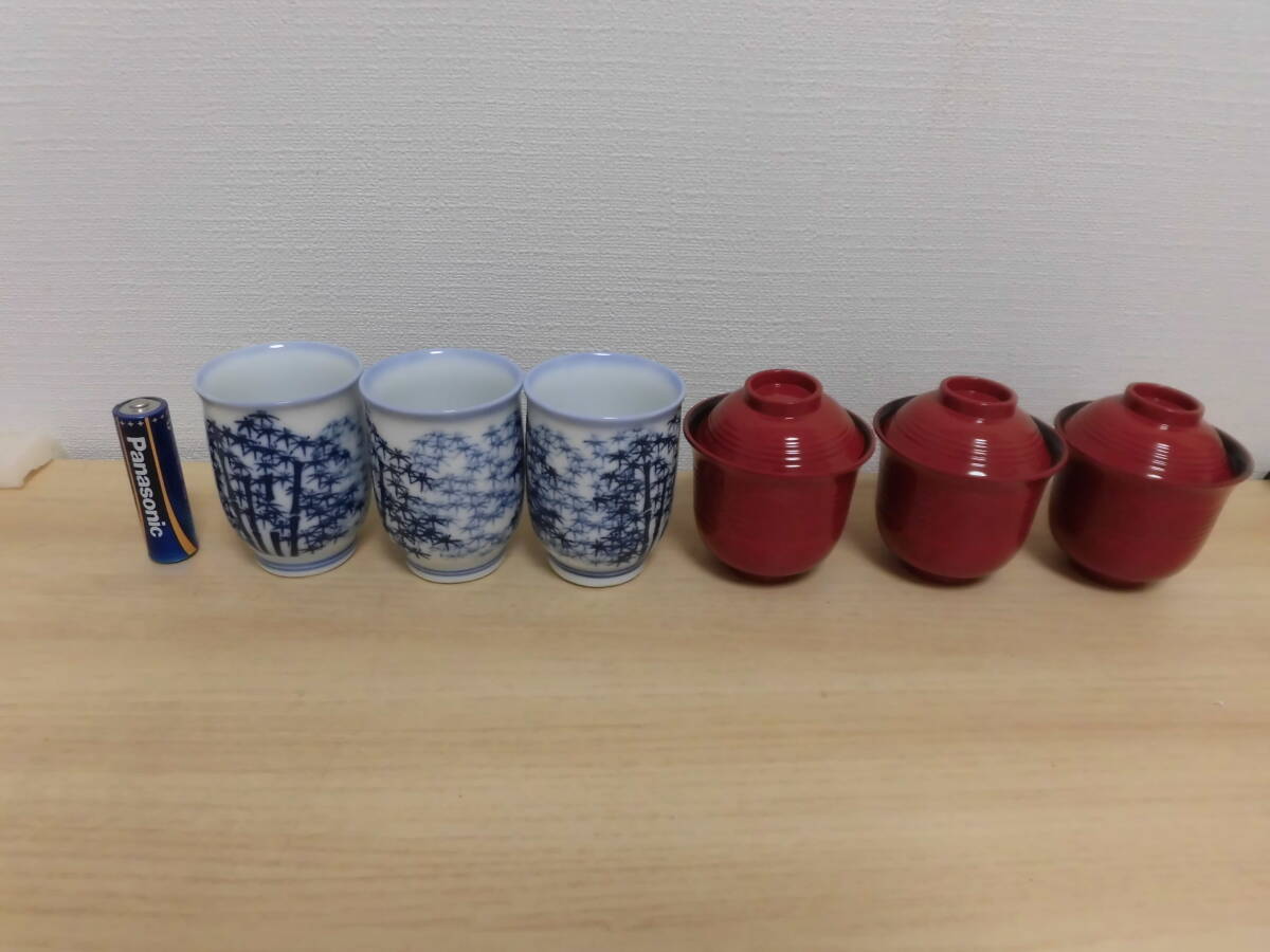 - 中古品★昭和レトロ アンティーク★ミニ食器 和食器 ミニサイズ お湯呑&味噌汁茶碗(フタ付き)