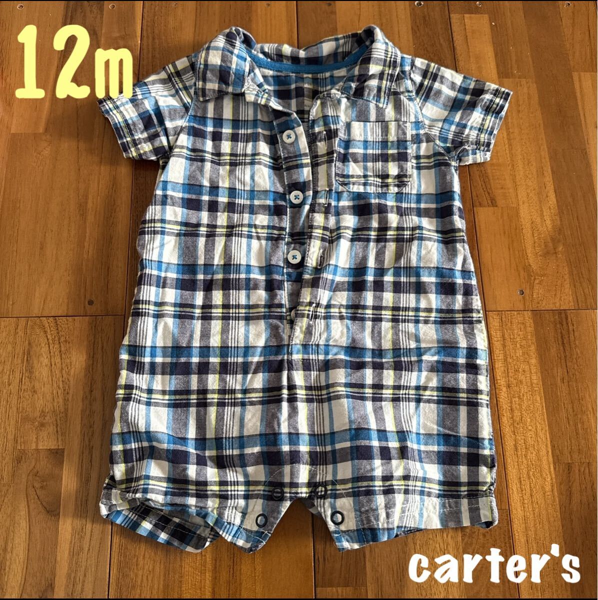> carter's チェック ロンパース 12m つなぎ シャツ 80 90 半袖 カバーオール ベビー服 男の子