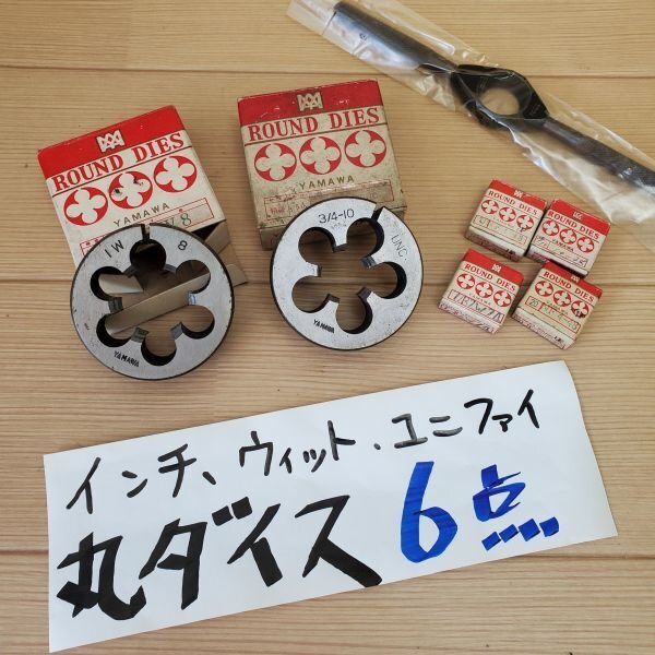 - 【アウトレット品】 YAMAWA 丸ダイス 外径20、50 インチ ウィット ユニファイ 詰め合わせ6点セット+ハンドル1個 ねじ山修正 sp-024-711